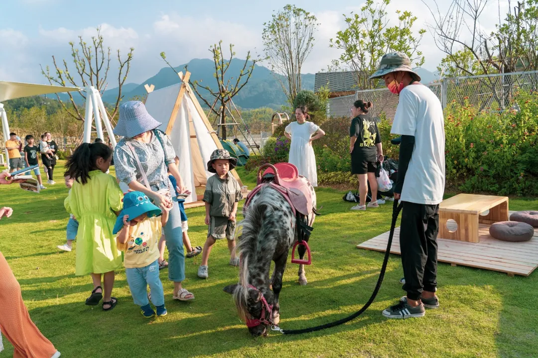 云岚牧场,绿草如茵,空气清新。大风车、小木屋、露营地、木围栏……一派童话中的田园风光。
